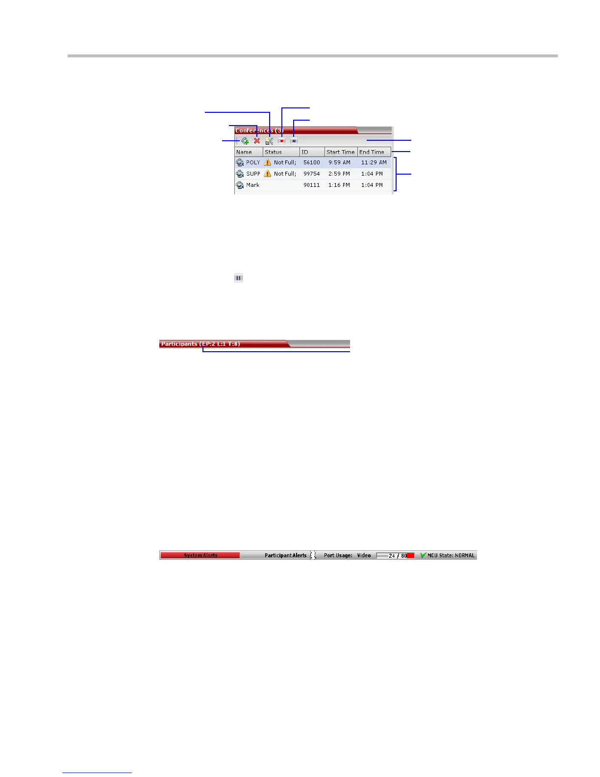 The Status Bar at the bottom of the RMX Web Client contains System and Participant Alerts