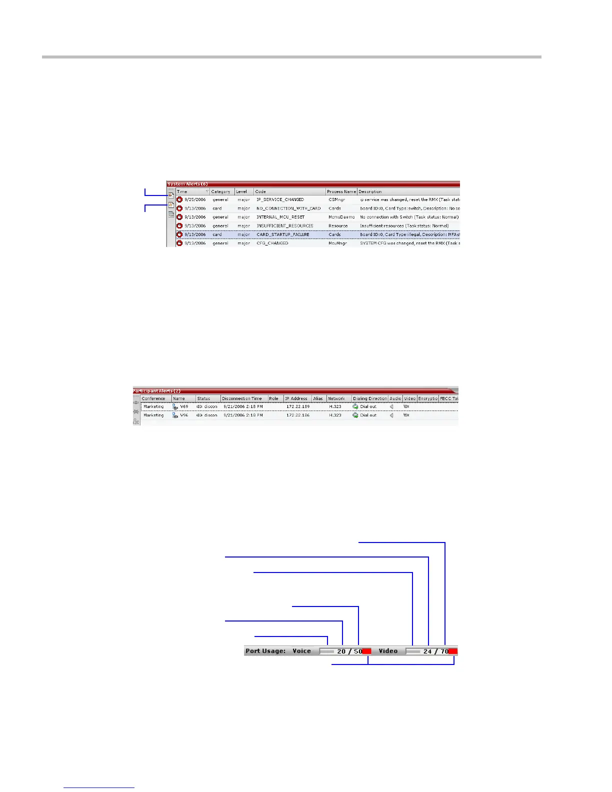 • The number of Video and Voice ports in use.