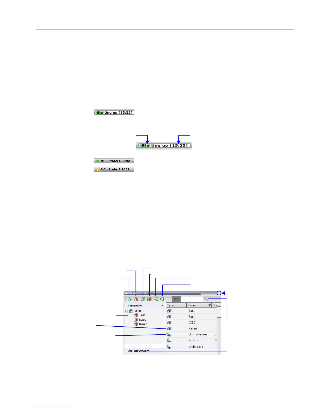 The Address Book is a list of Participants and Groups that have been defined on the RMX. The