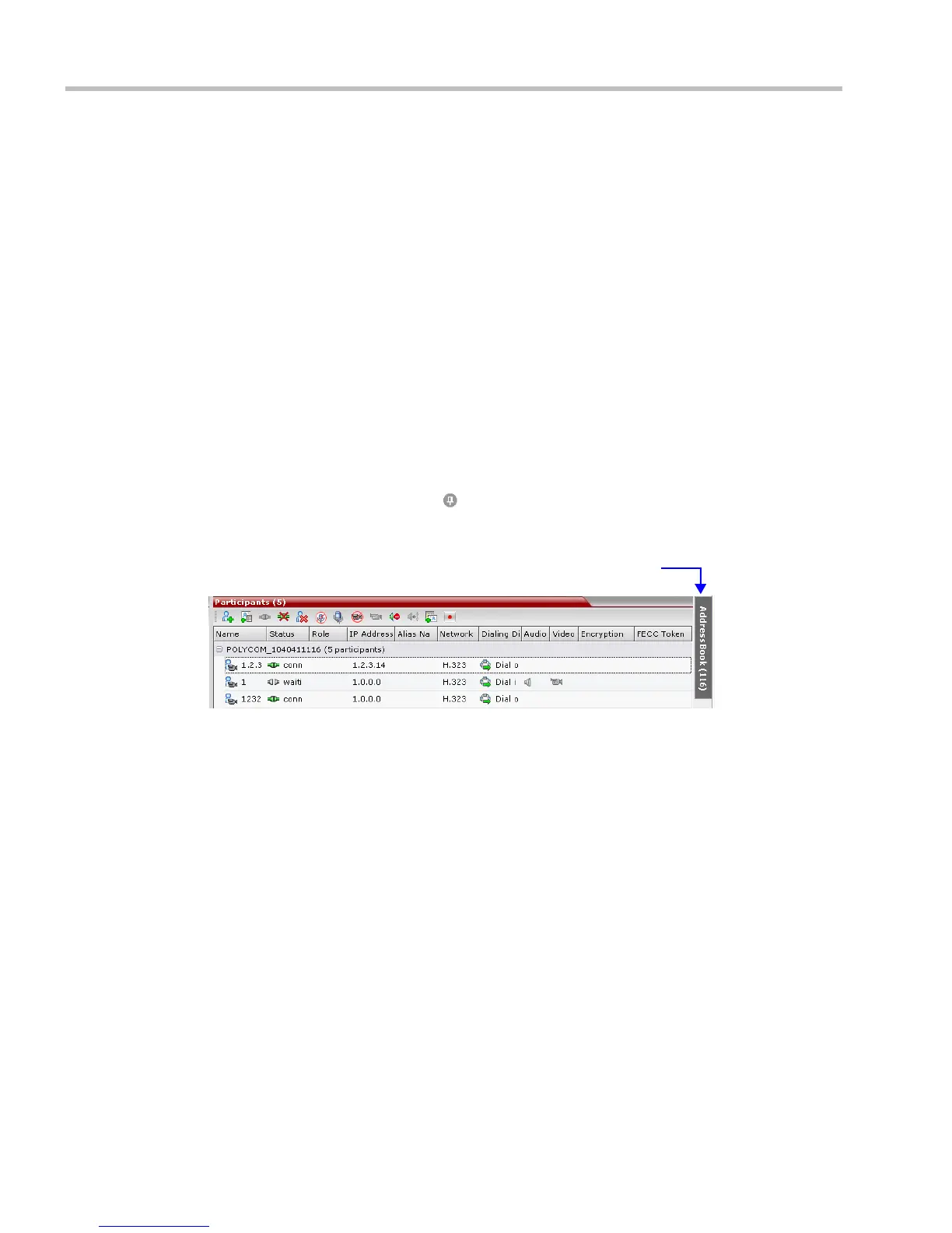 The first time you access the RMX Web Client, the Address Book pane is displayed. You can