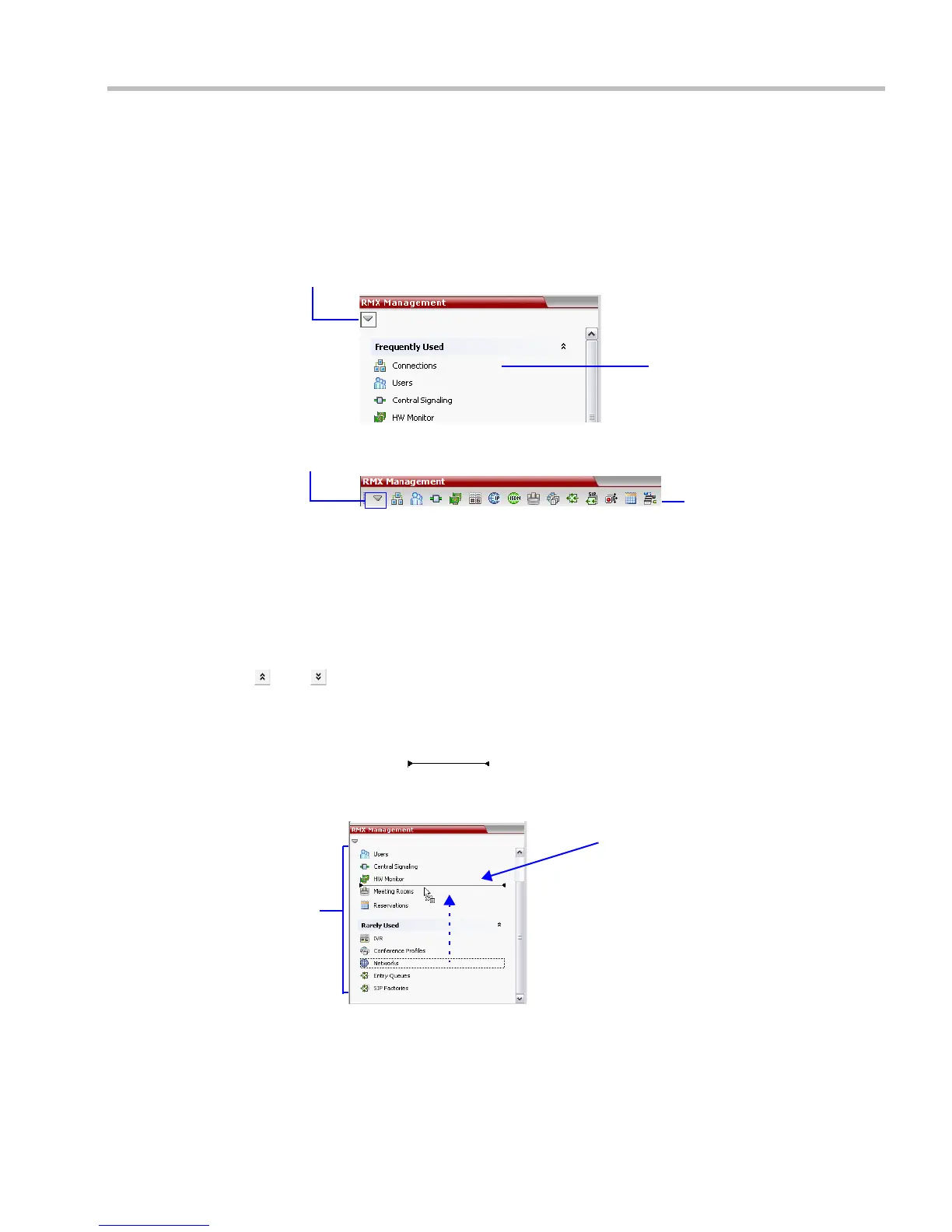 >> In the RMX Management pane, click the Toolbar View button to switch to Toolbar view.
