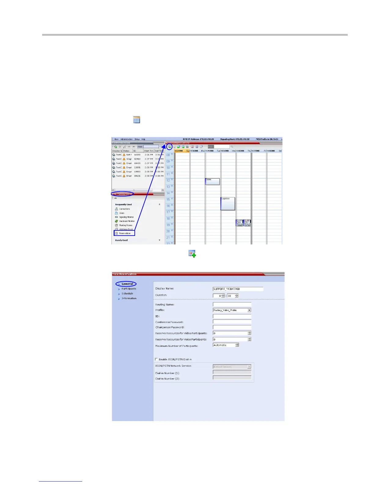 1 In the RMX Management pane, click the Reservation Calendar
