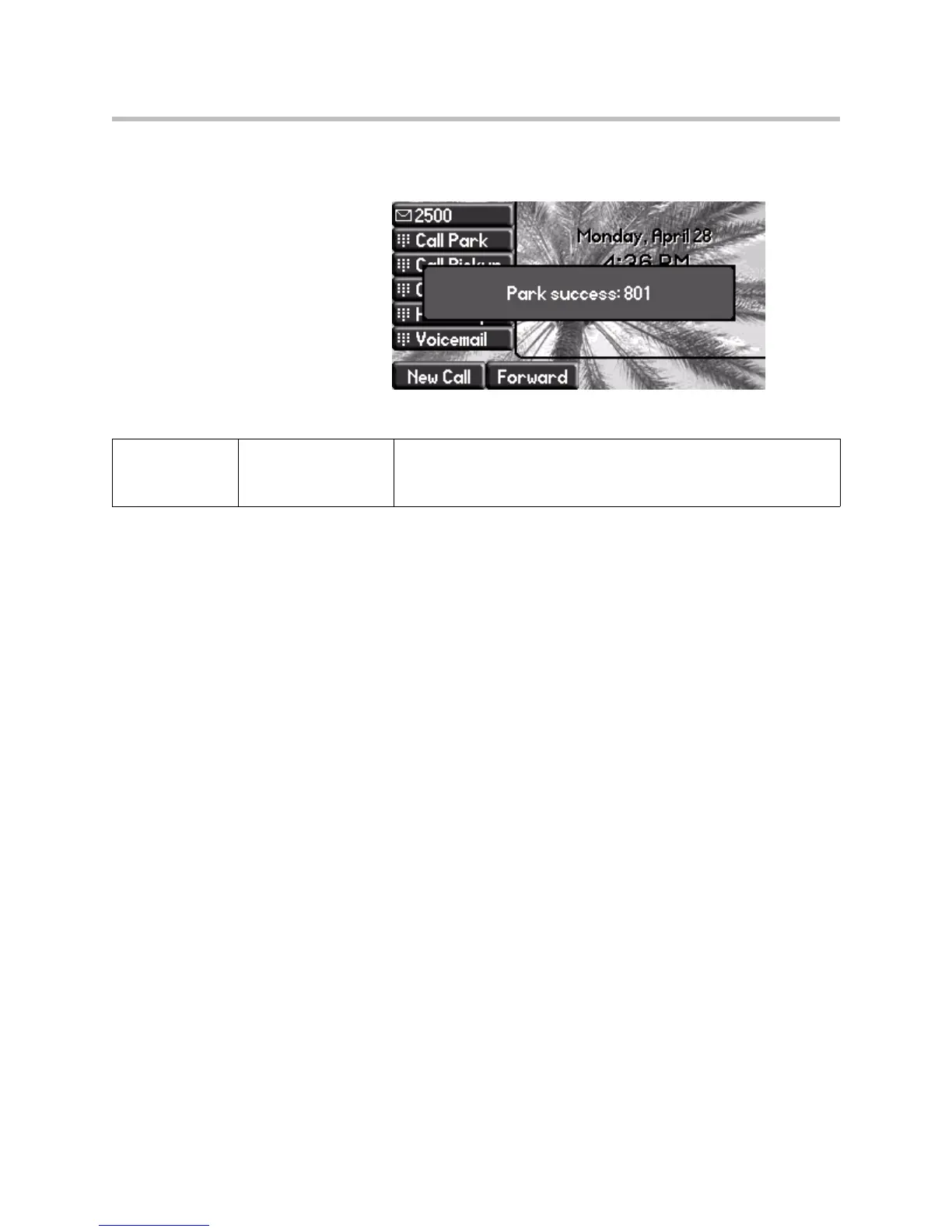 For example, if a user parks a call, the following message appears on their