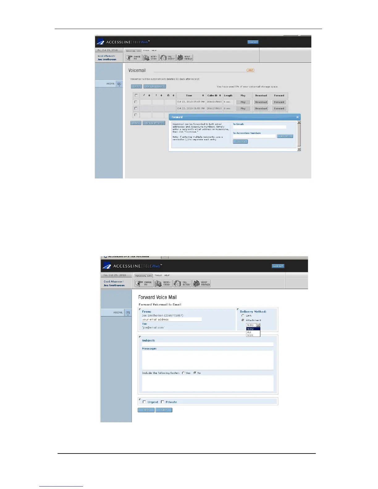 message or sent the voicemail message as an attachment