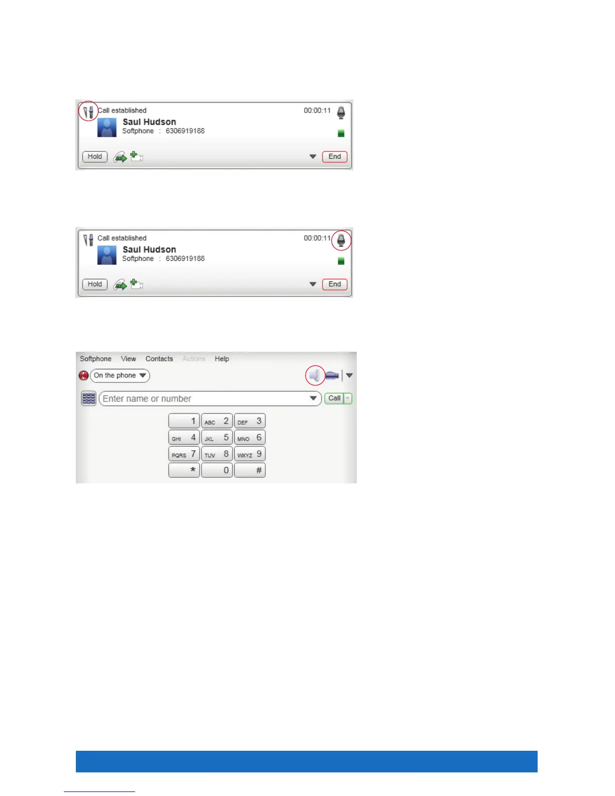 If your computer is equipped with a speaker phone, click the speaker icon to turn on or off.