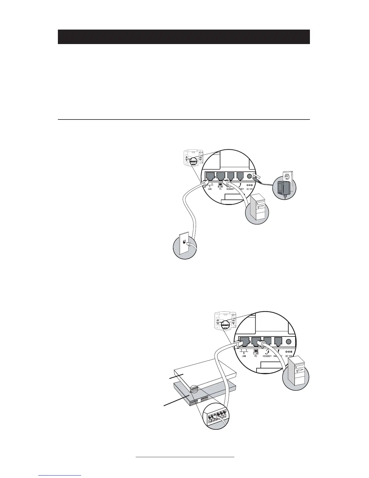 cable between the LAN jack on the telephone