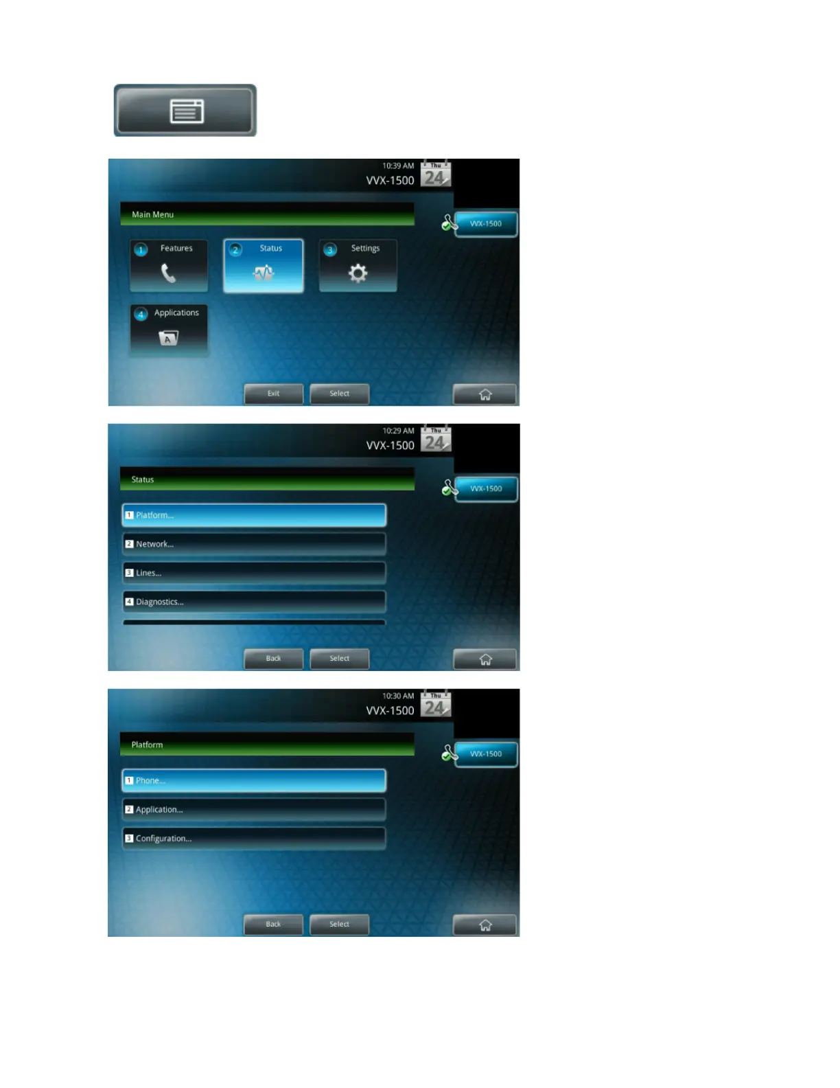 Scroll down to the “Status” option and press the “Select” button.