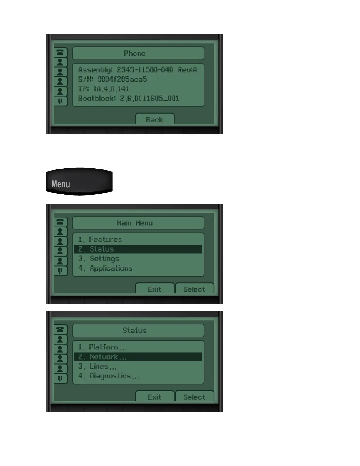 Scroll down to the “Status” option and press the “Select” button.
