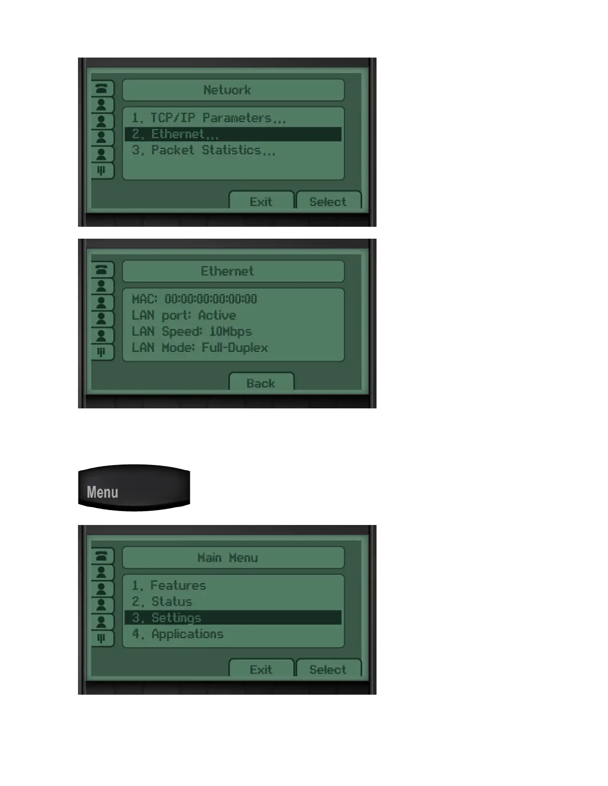 Scroll down to the “Ethernet” option and press the “Select” button.