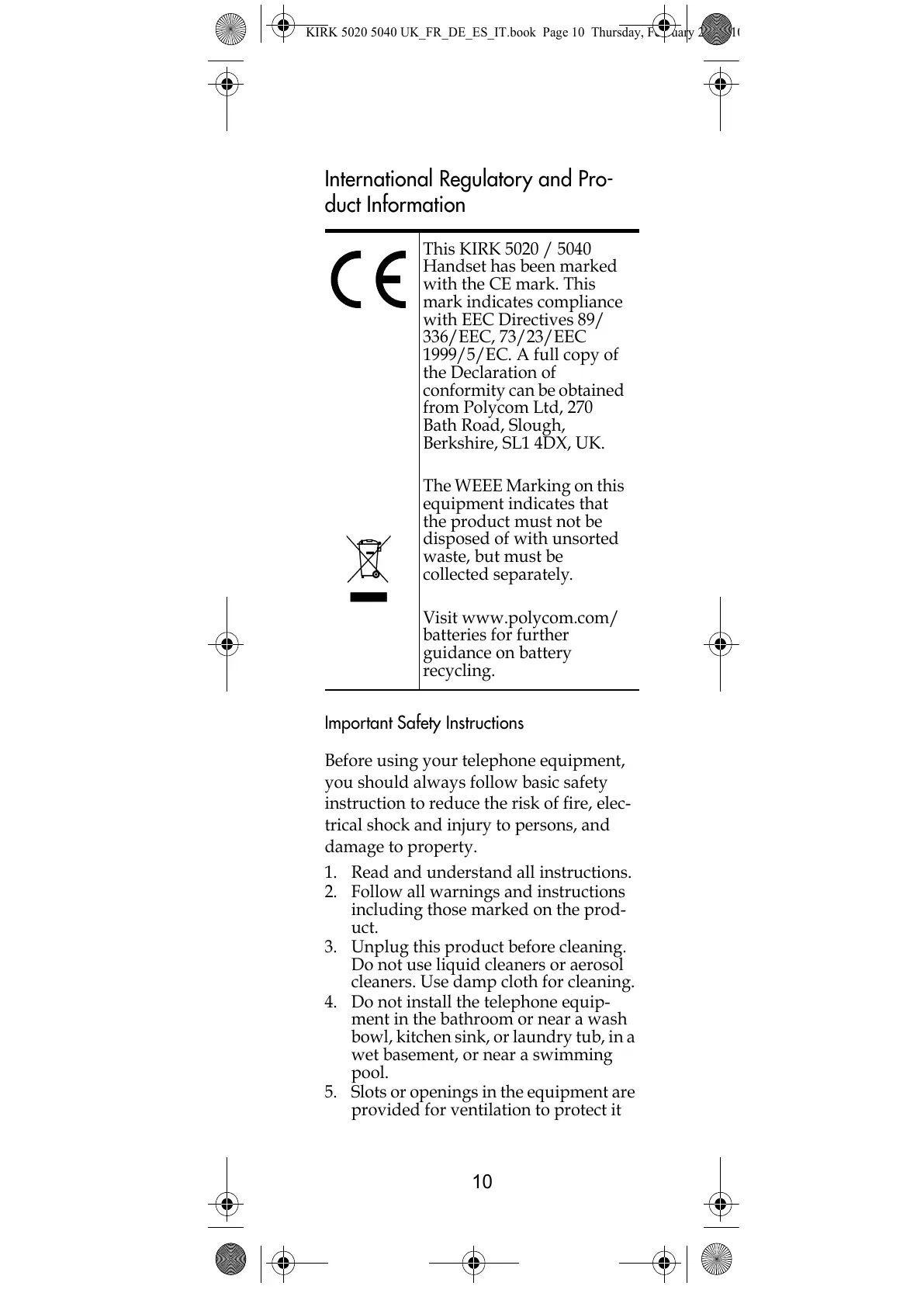 KIRK 5020 5040 UK_FR_DE_ES_IT.book Page 10 Thursday, February 25, 201