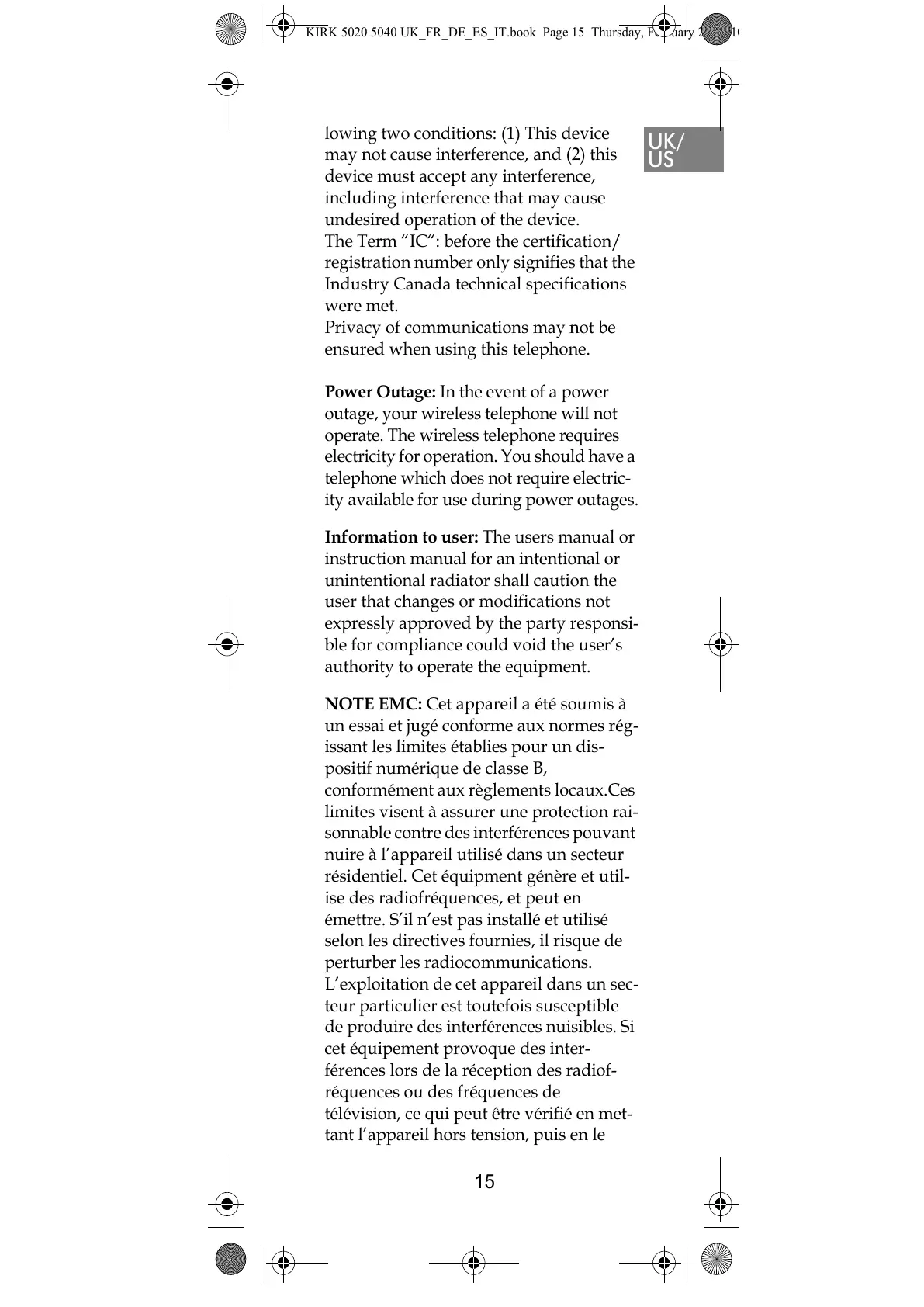 KIRK 5020 5040 UK_FR_DE_ES_IT.book Page 15 Thursday, February 25, 201