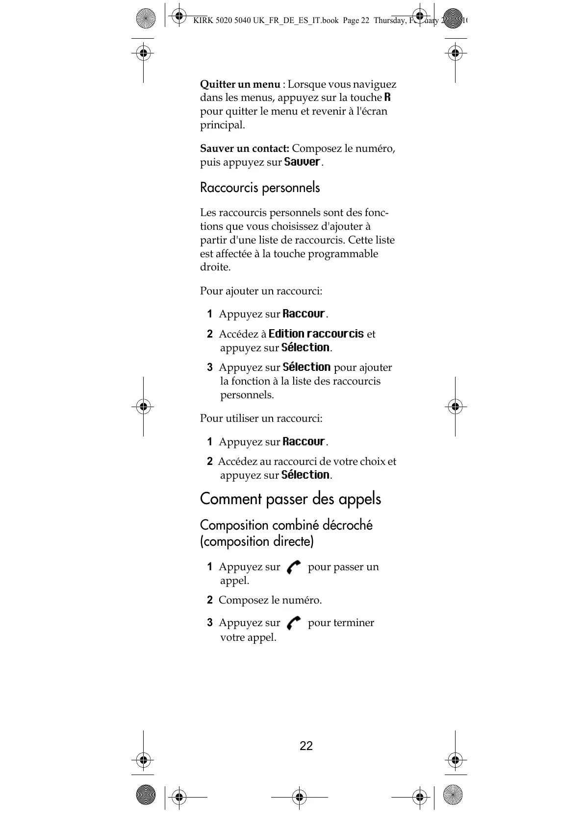 KIRK 5020 5040 UK_FR_DE_ES_IT.book Page 22 Thursday, February 25, 201