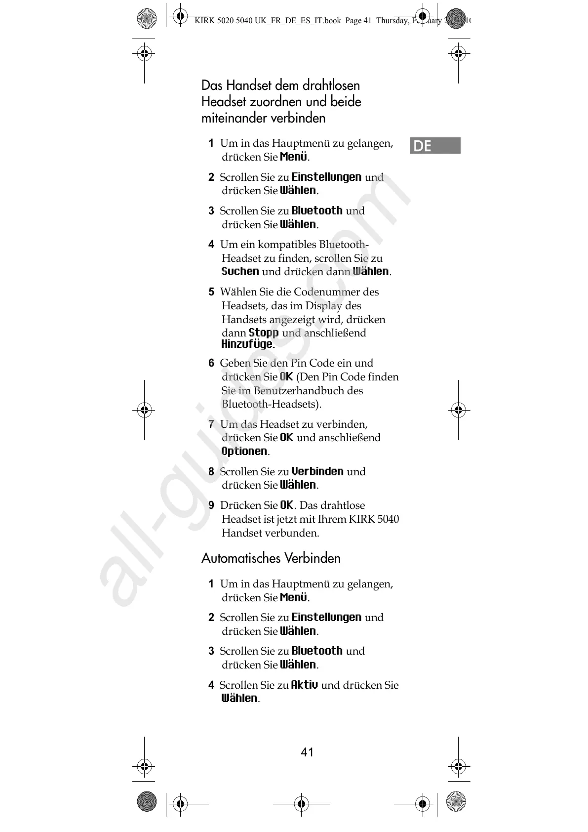 KIRK 5020 5040 UK_FR_DE_ES_IT.book Page 41 Thursday, February 25, 201