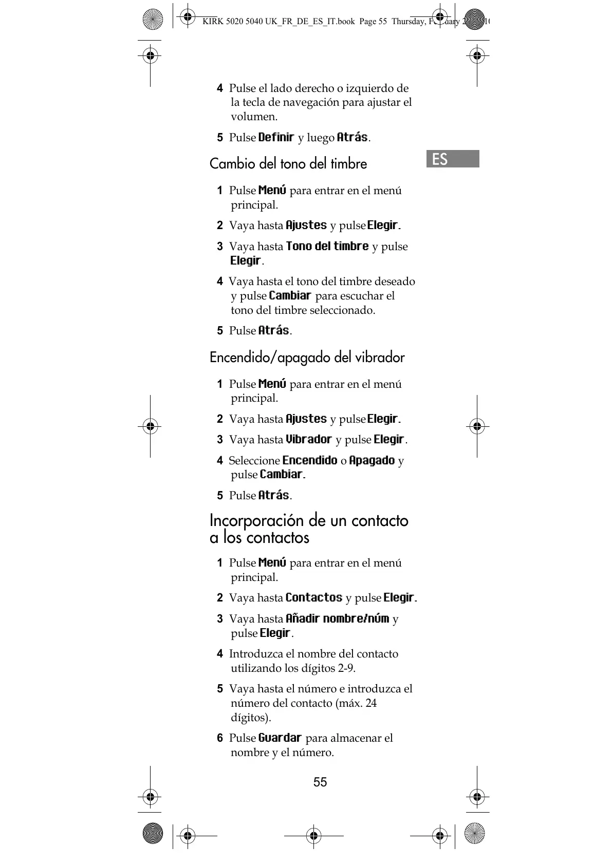 KIRK 5020 5040 UK_FR_DE_ES_IT.book Page 55 Thursday, February 25, 201