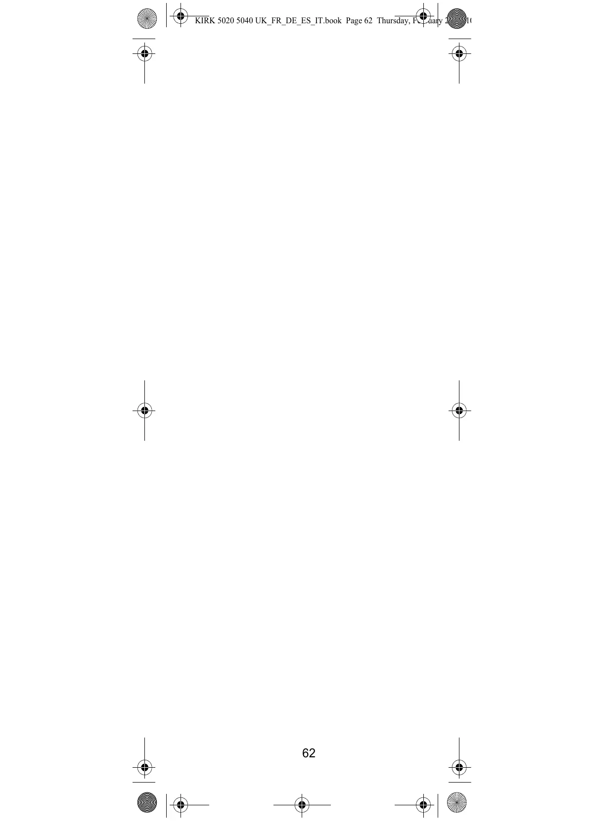 KIRK 5020 5040 UK_FR_DE_ES_IT.book Page 62 Thursday, February 25, 201