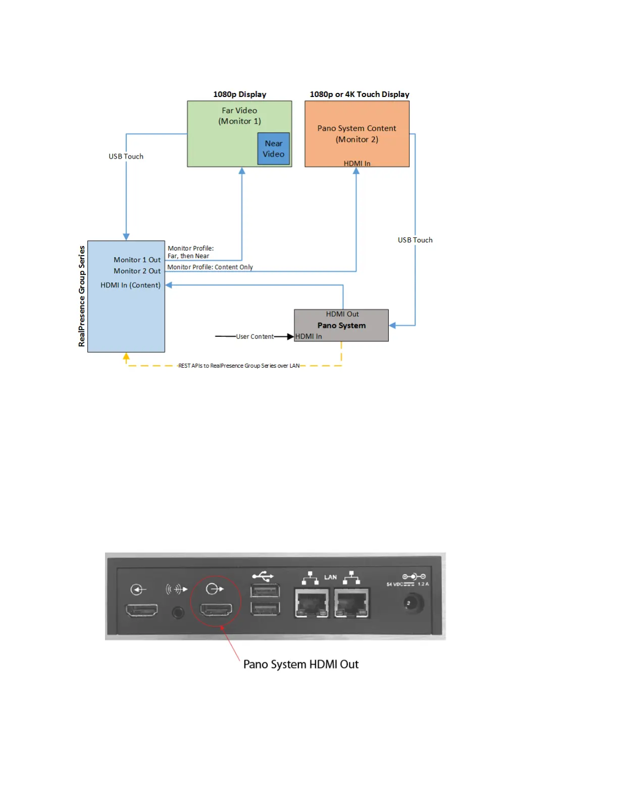 The following instructions describe how to directly connect your Pano system, Polycom video system, and
