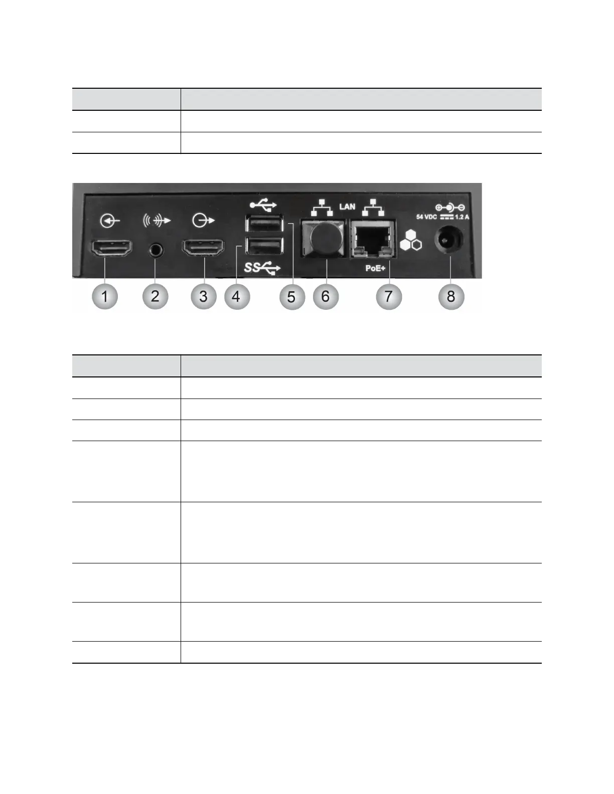 8 2.0 mm jack for optional external 54 V DC power adapter