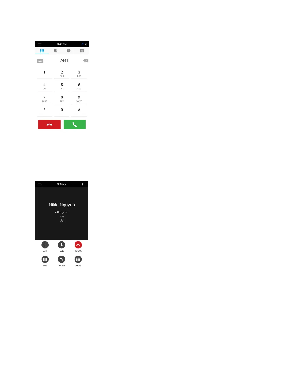 When you have an active call in progress, the name and number of the contact you are talking with and