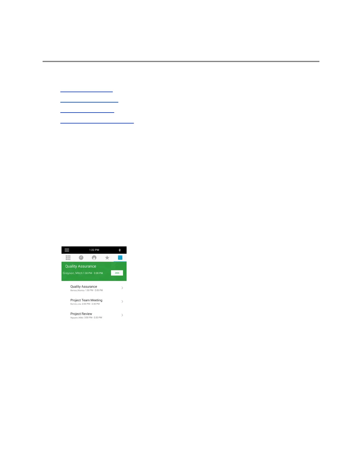 When connected to Microsoft Exchange Server, you can view and join meetings scheduled in Microsoft
