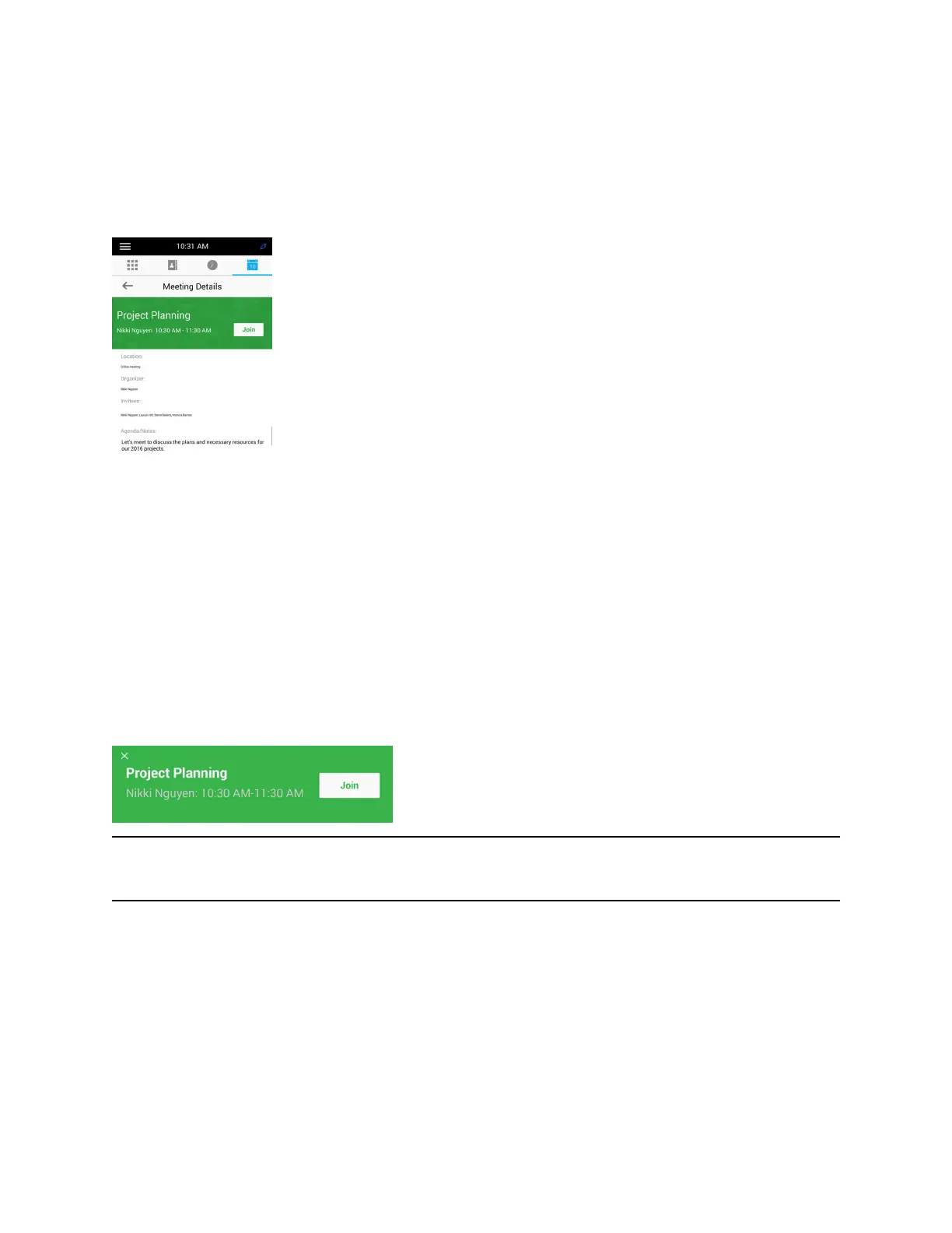 When you have a scheduled meeting on the calendar, a meeting reminder displays and a tone plays 5