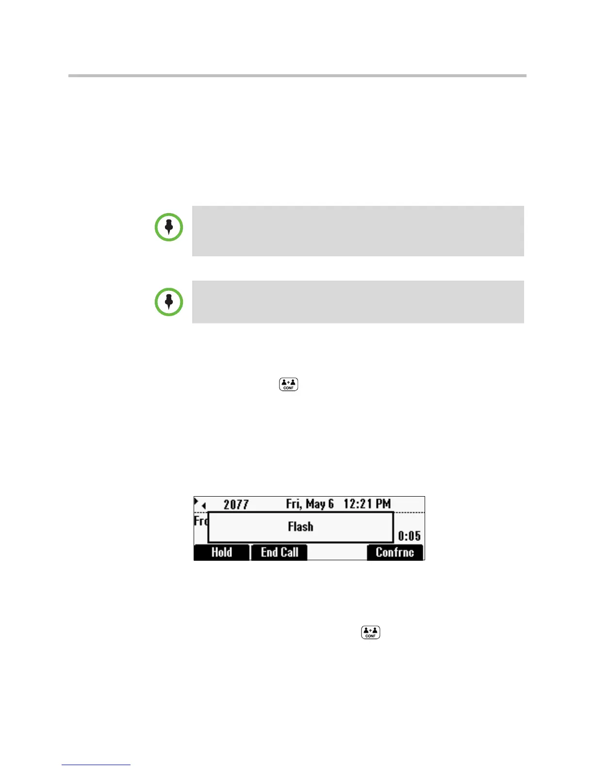 To set up a conference, you need to activate a hook flash. A hook flash is a