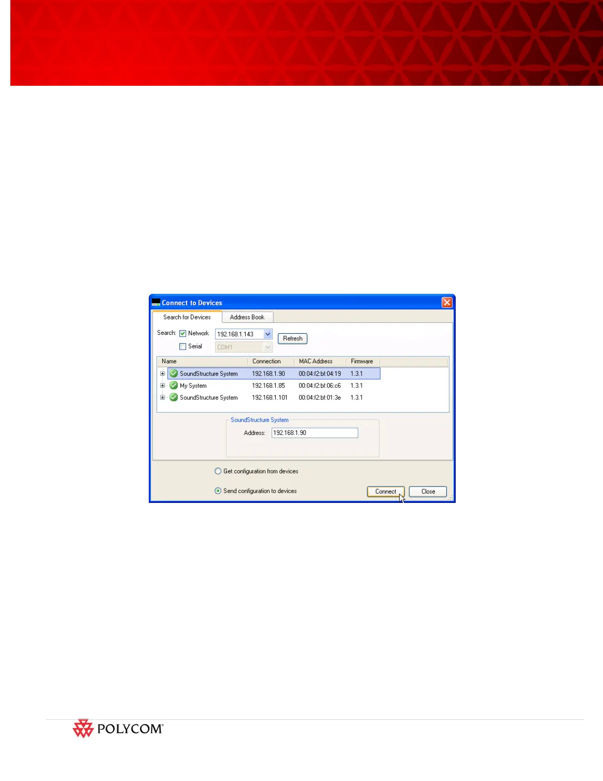 for Devices’ option. This will open the Connect to Devices dialog box where the desired SoundStructure