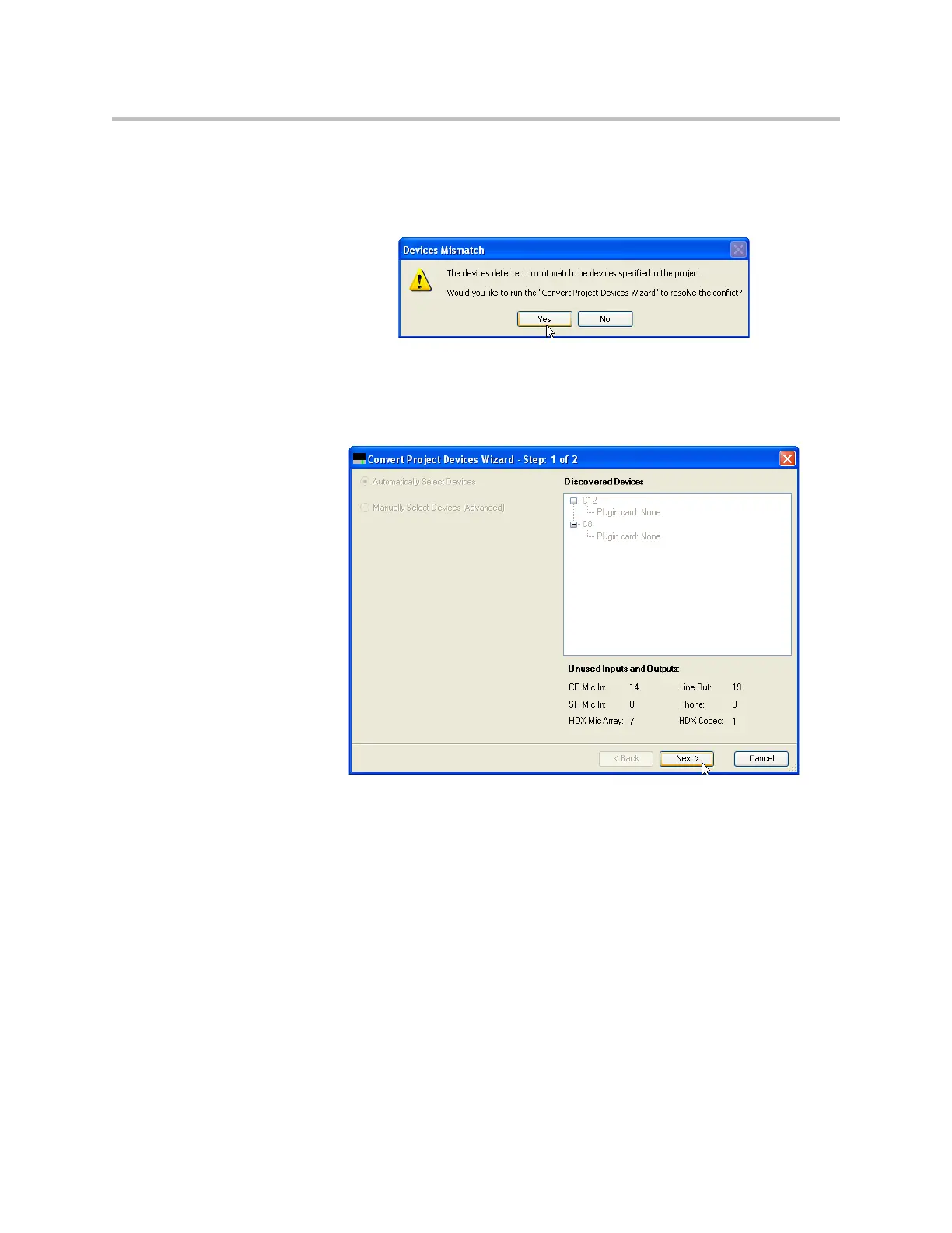 Select No to cancel the project upload or select Yes to correct the device mis-