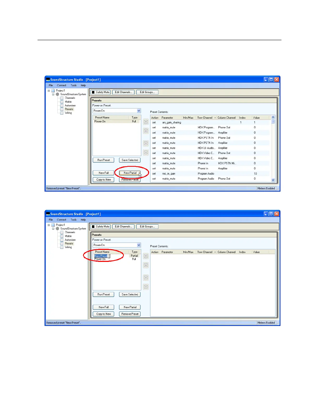 New partial presets may be created by selecting ‘New Partial’ as shown in the