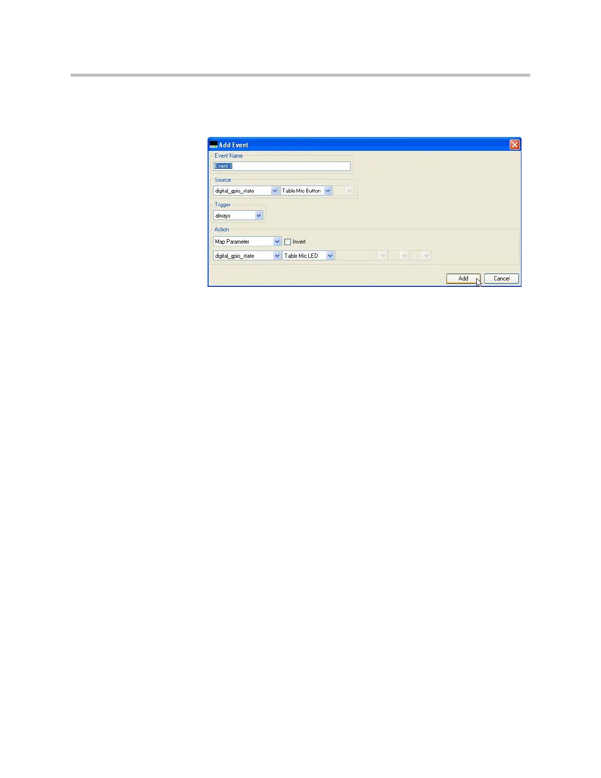 column headings including the Event Name, Source, Parameter, Trigger, and