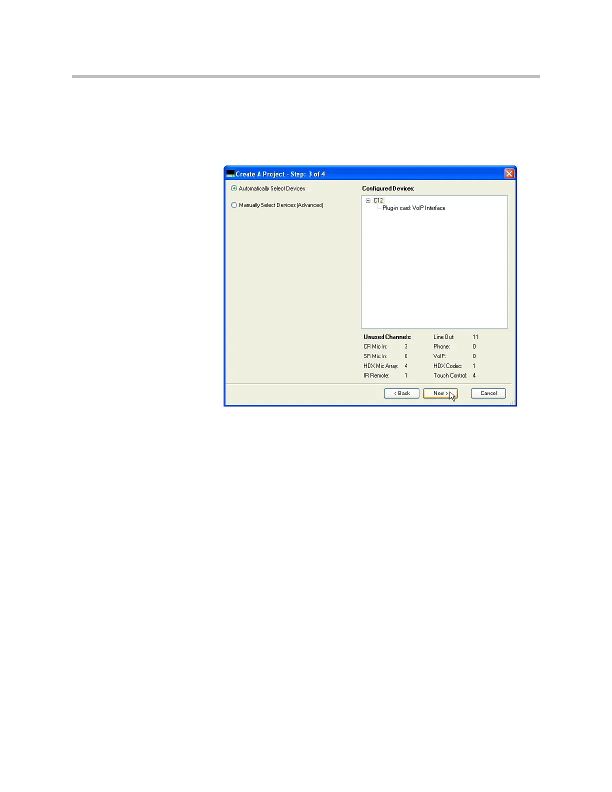 4. In Create a Project - Step 3, select the SoundStructure equipment required