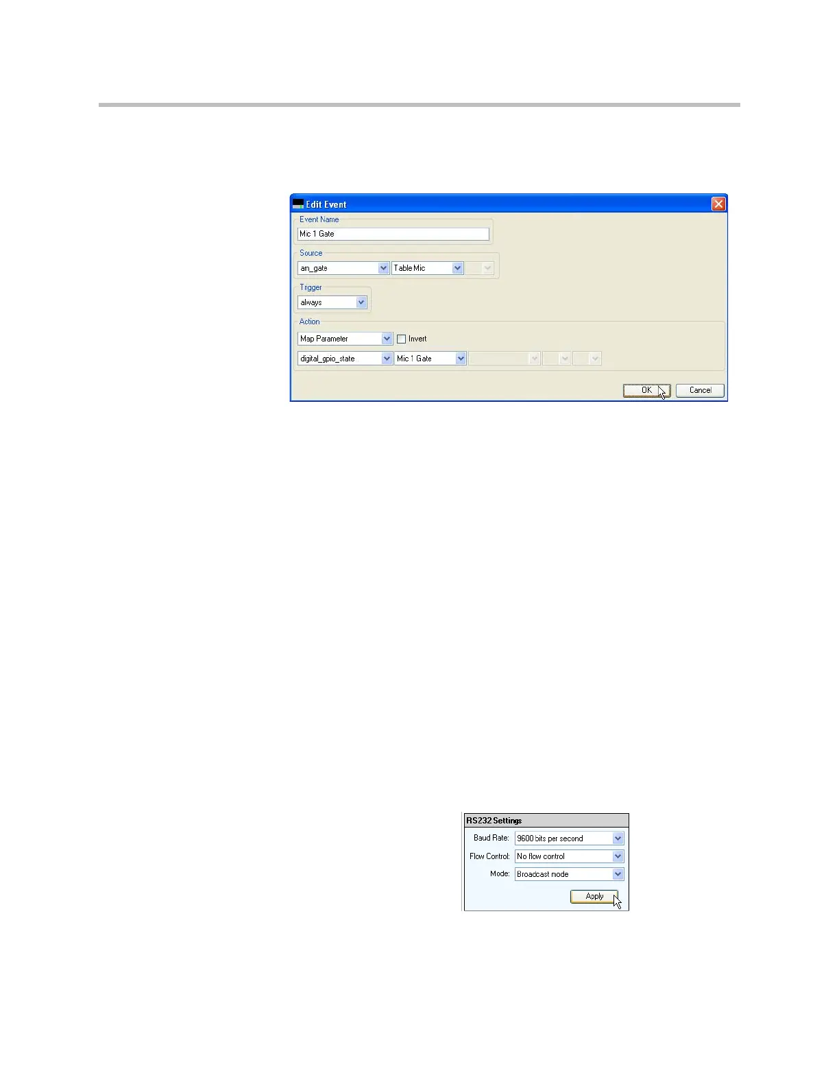 indicate on a touch panel that the particular microphone is gated on or off. If