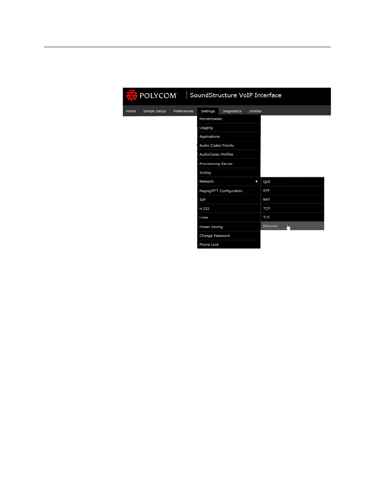 To customize the Ethernet settings of SoundStructure VoIP Interface, navigate