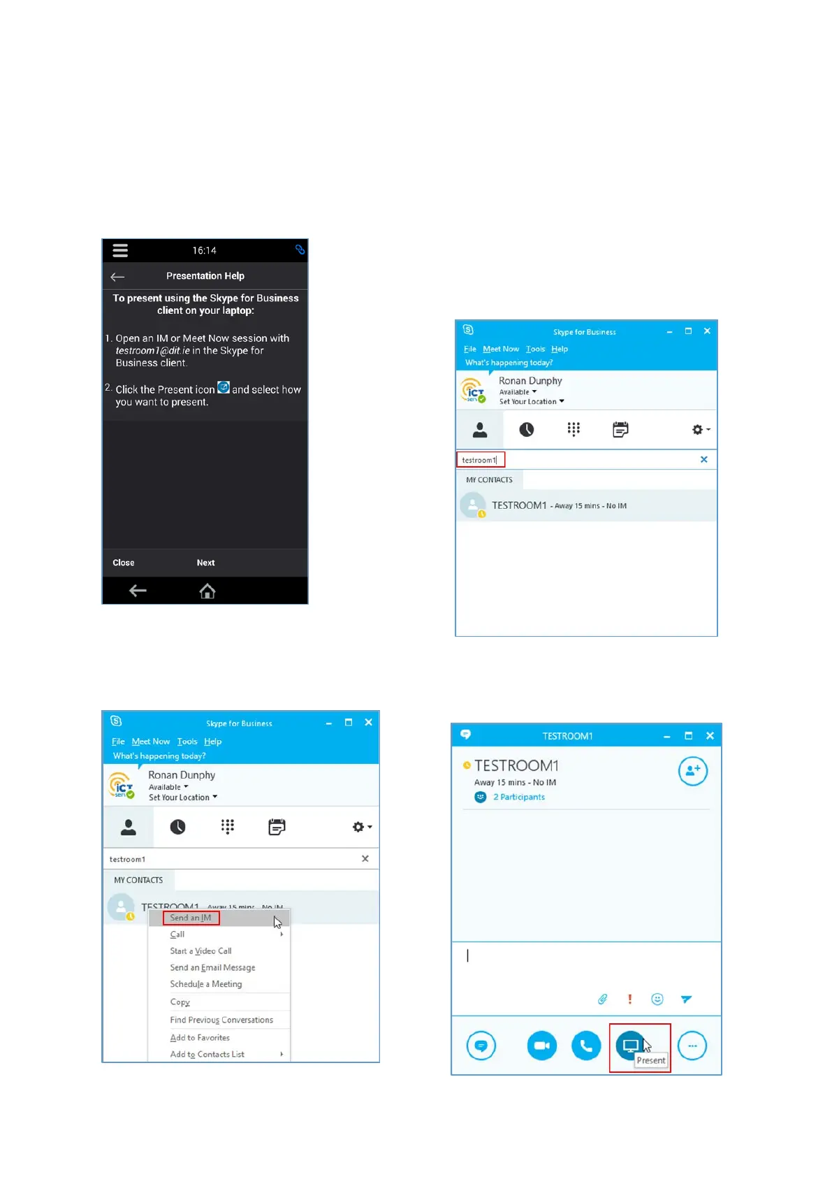 display in a meeting room from a TU Dublin City Campus computer through the Skype for Business
