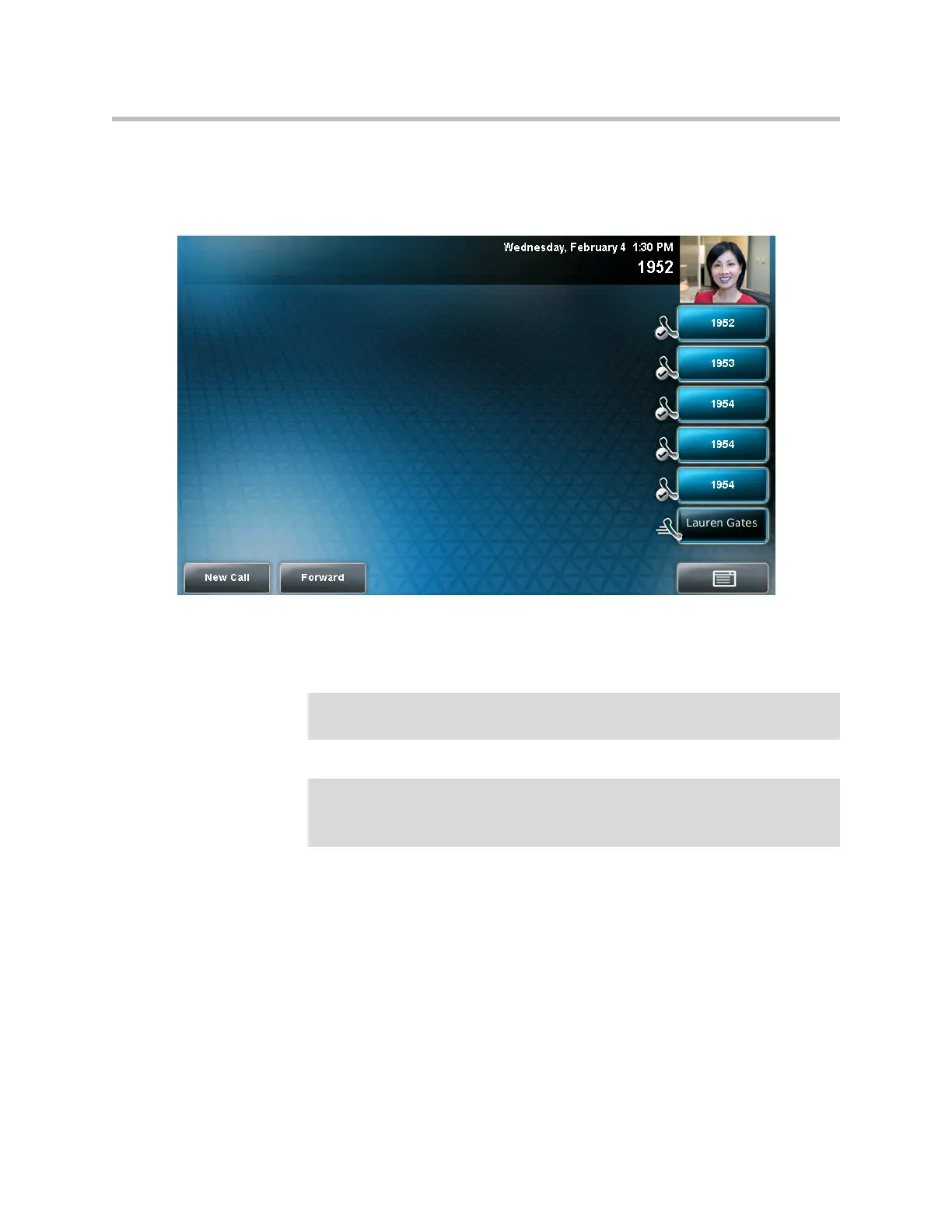 The following figure shows a phone set up with two lines (1952 and 1953) that