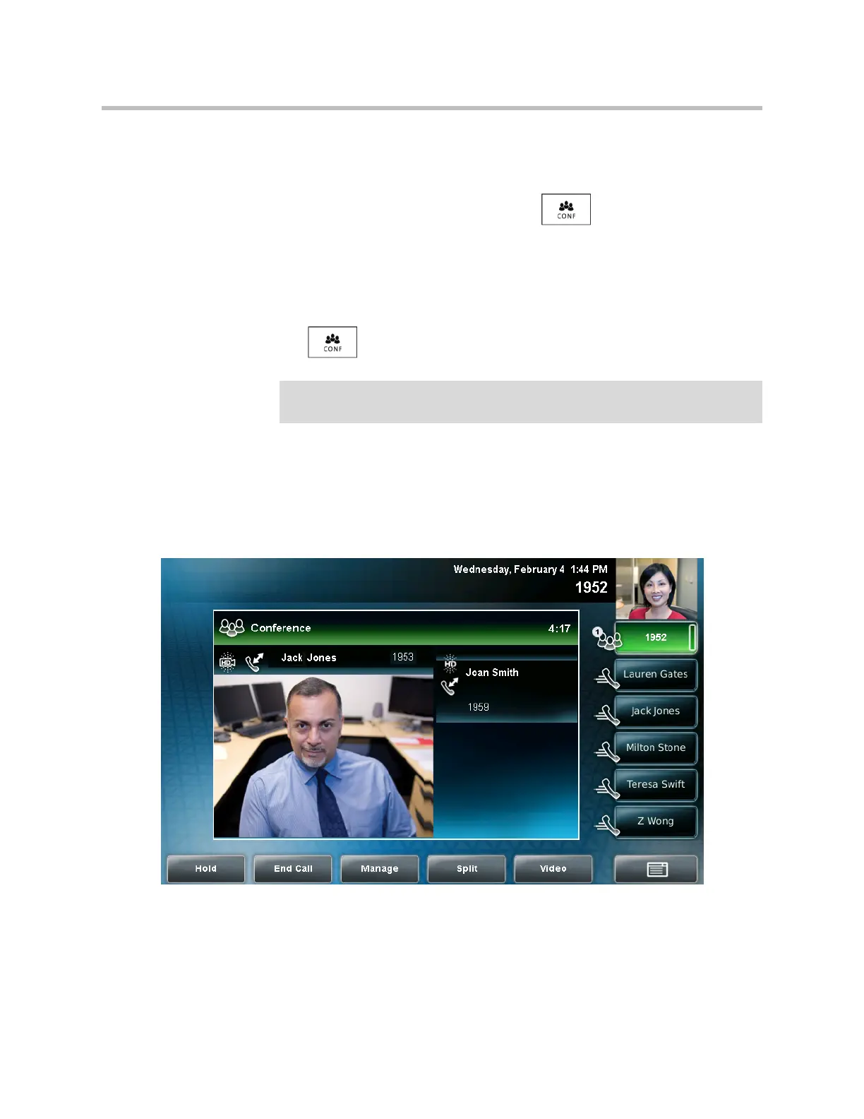 The Conference with: screen displays.