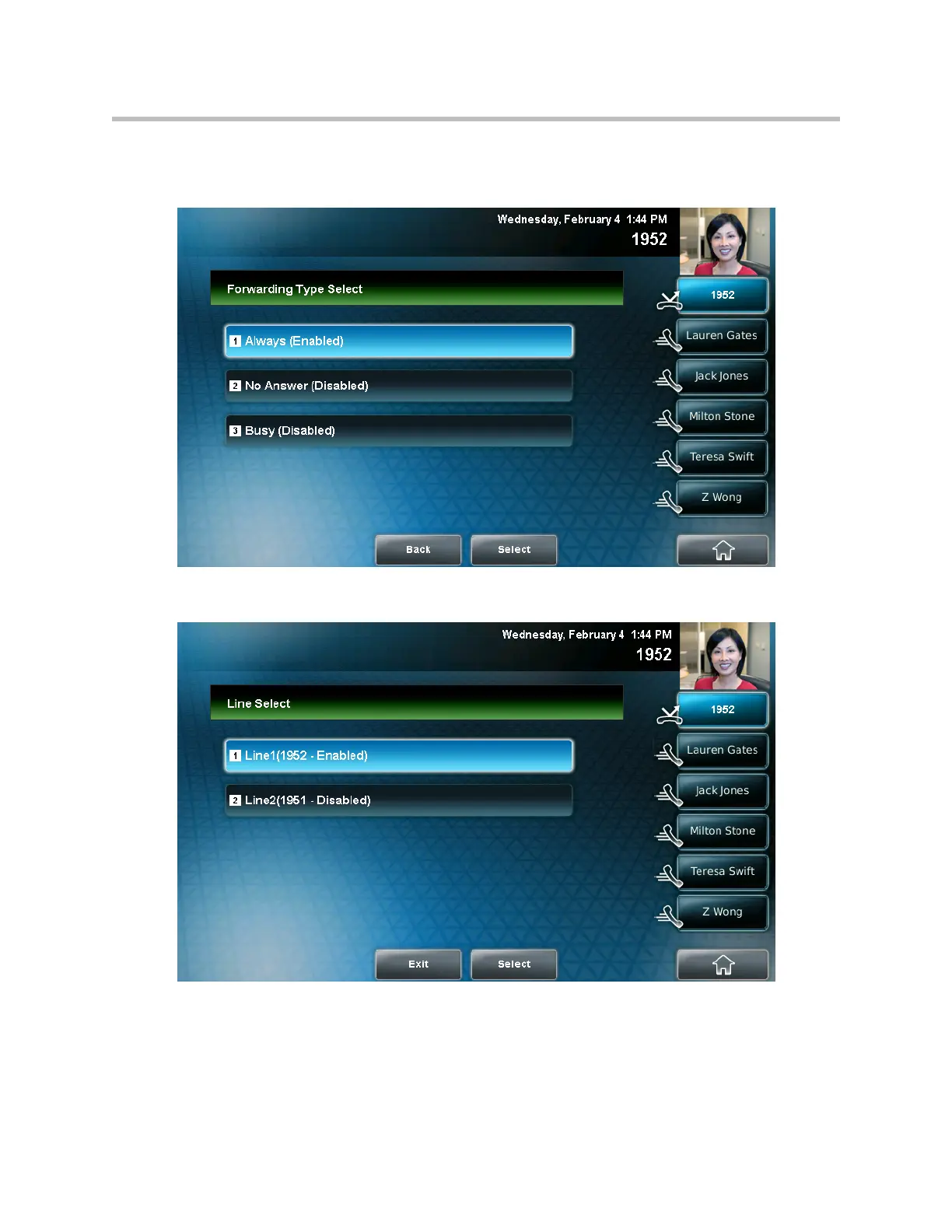 If your phone is set up with a single line, The Forwarding Type Select