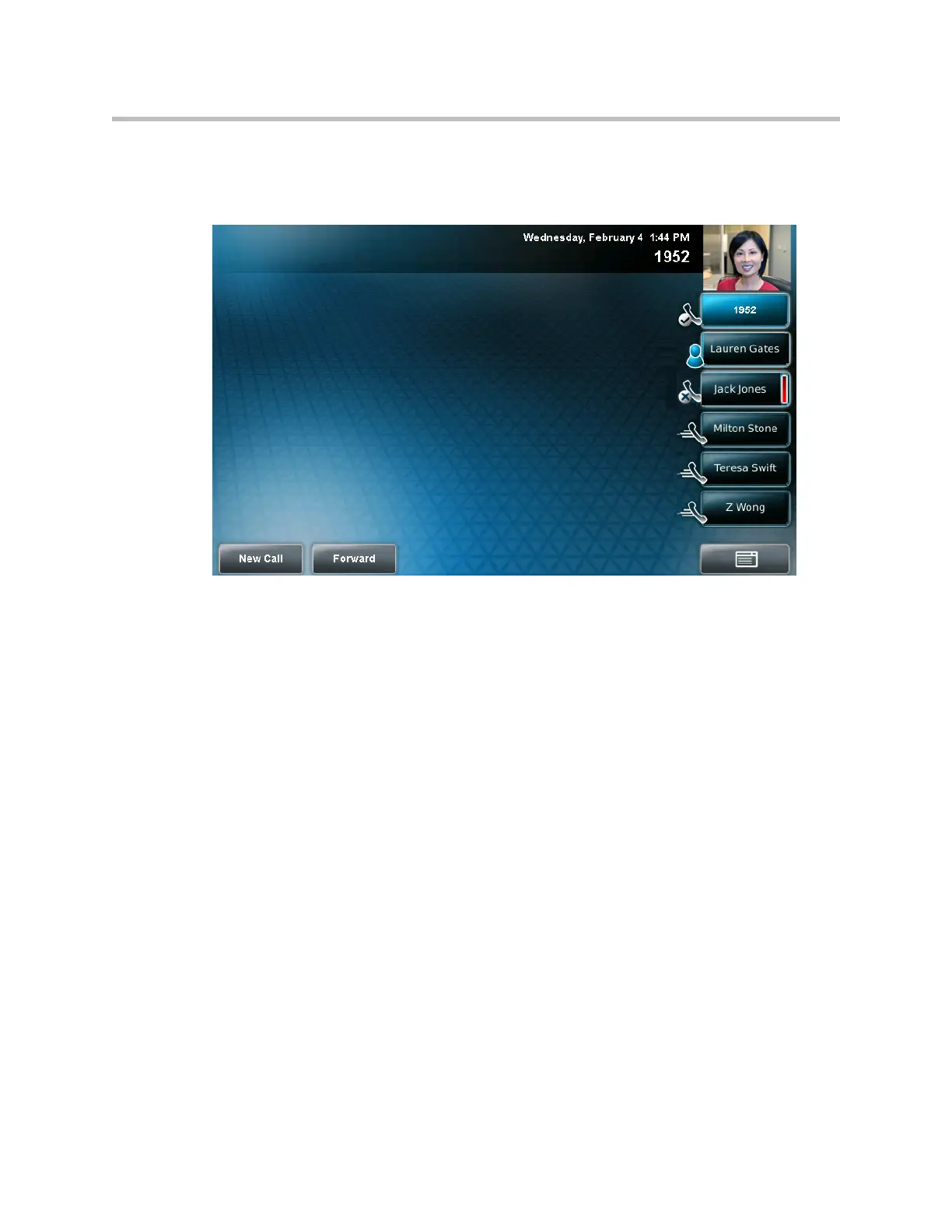 The following figure shows a phone that is monitoring two buddies: Lauren