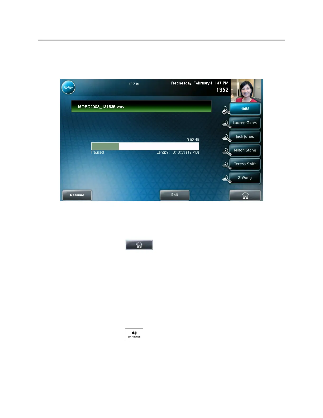 — If you were listening to the file with the handset or headset, press