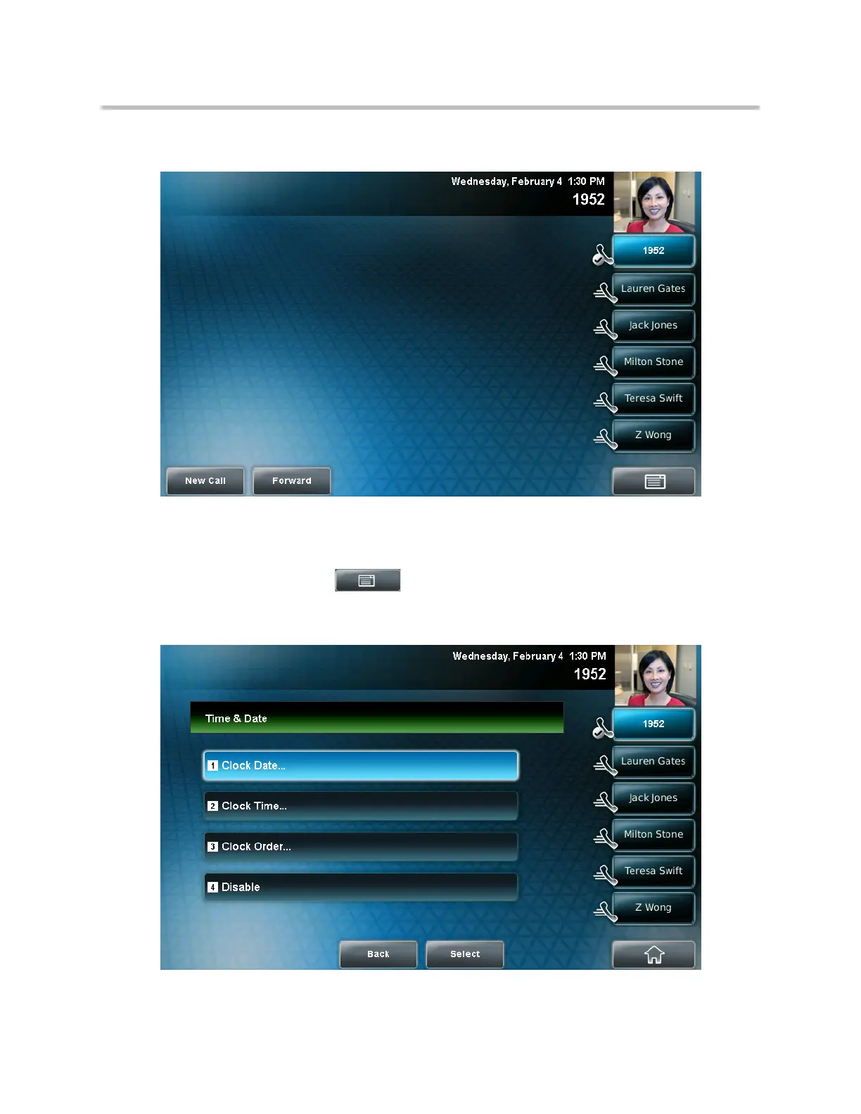 To update the time and date display: