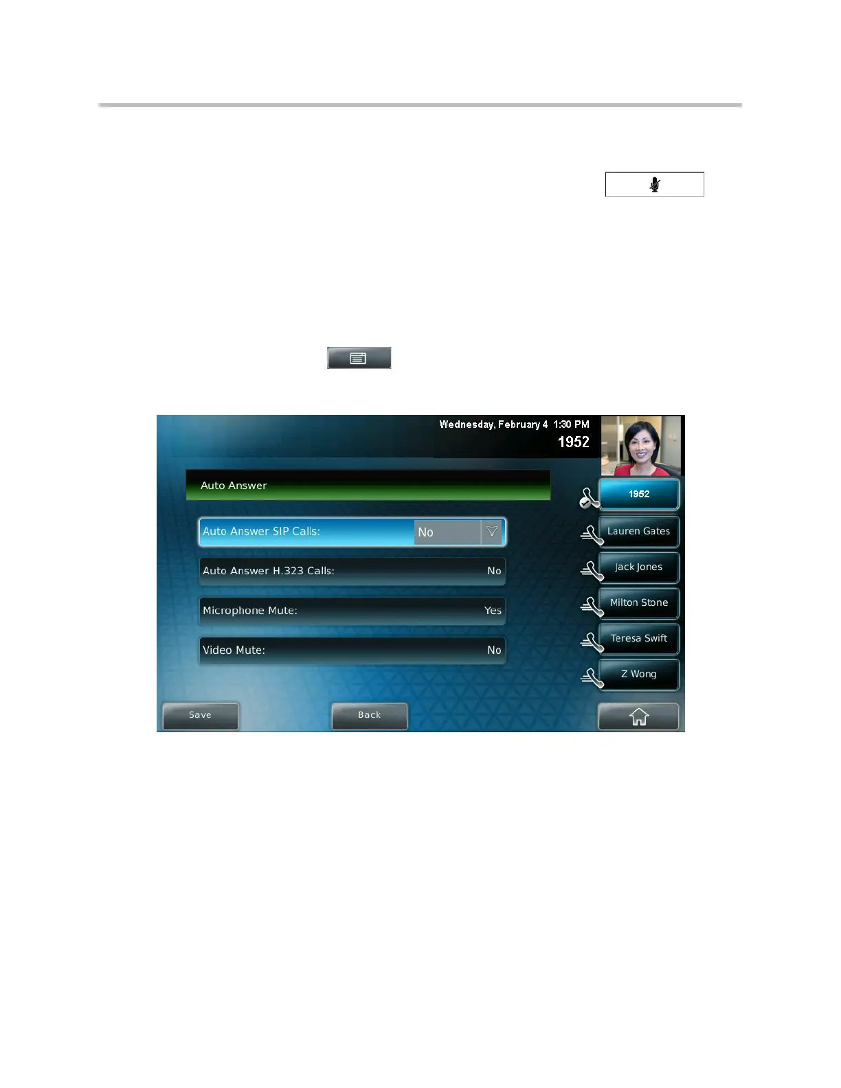 automatically answers calls. To unmute the call, press . To