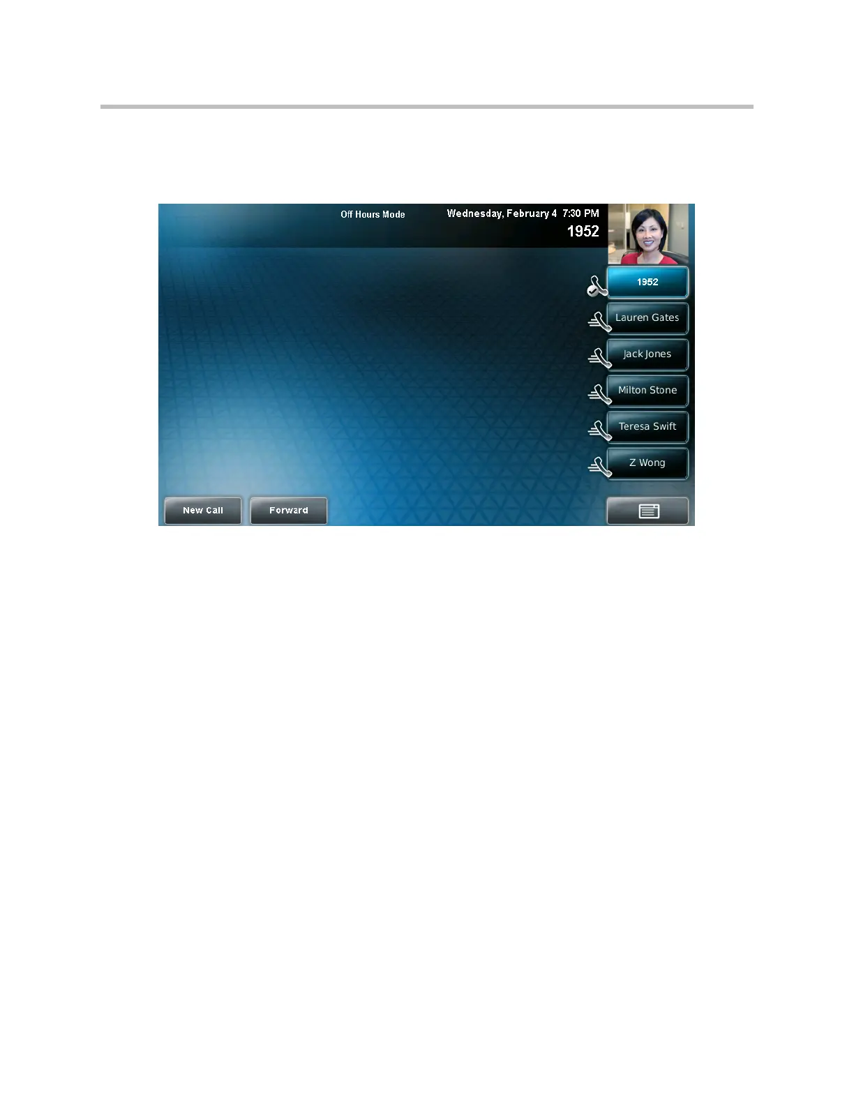 During off hours, the touch screen displays “Off Hours Mode” on the status