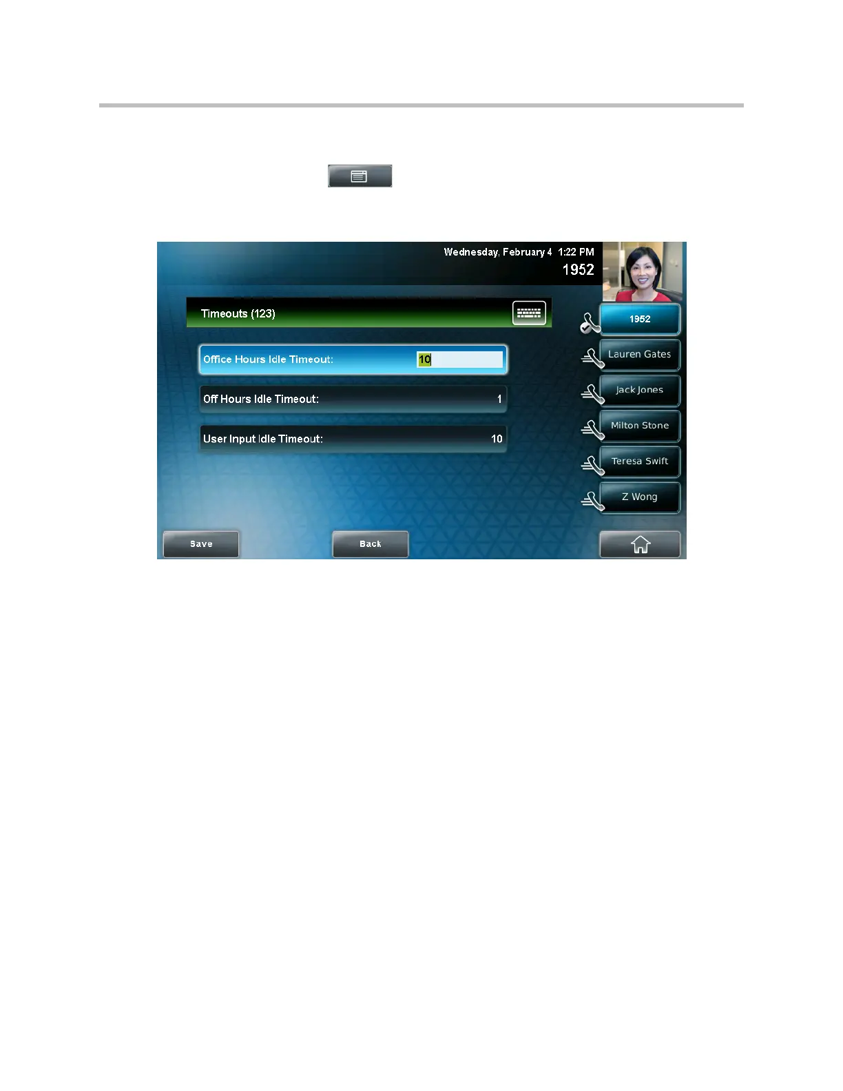 phone should wait after being idle after a key press (during office hours