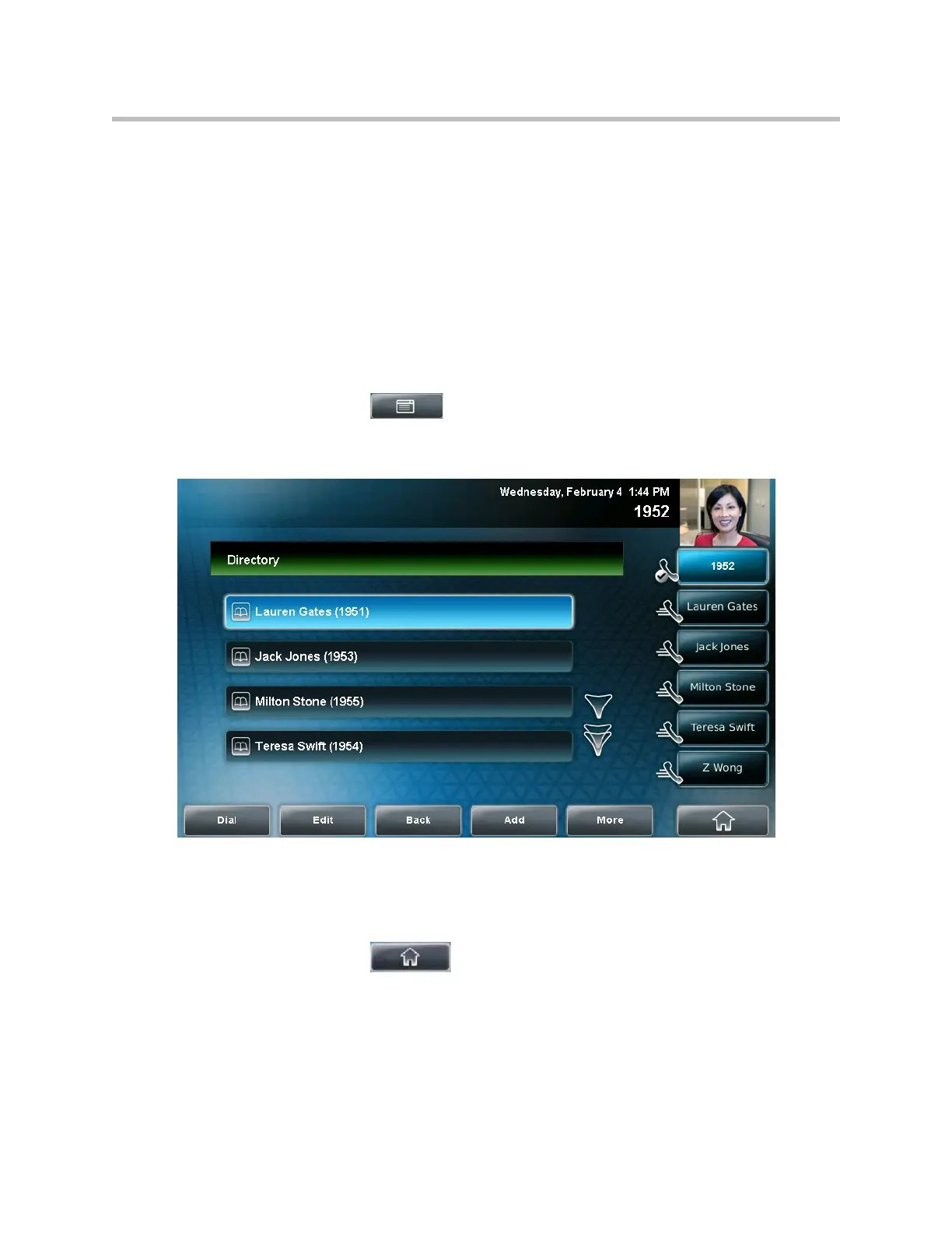 1. Tap > Features > Contact Directory.