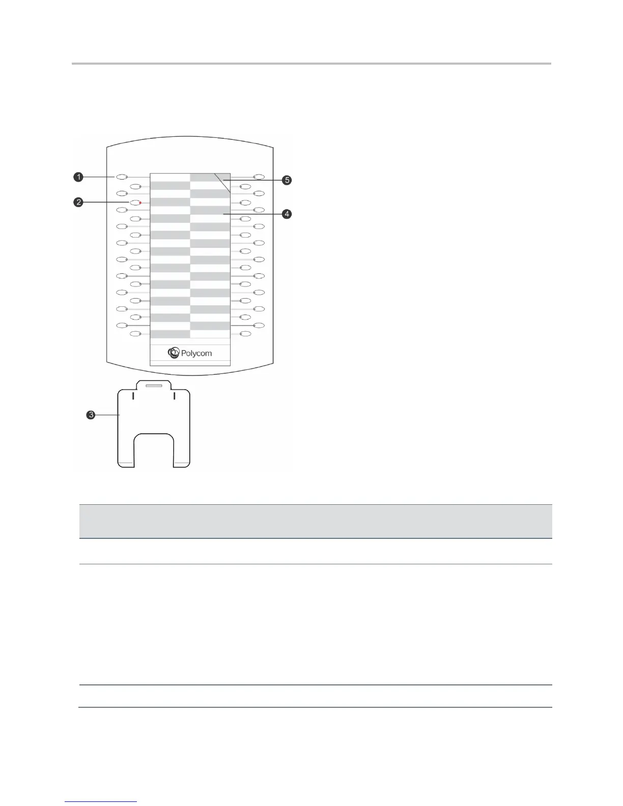 The next figure illustrates the features, components, and keys available on the expansion modules with a