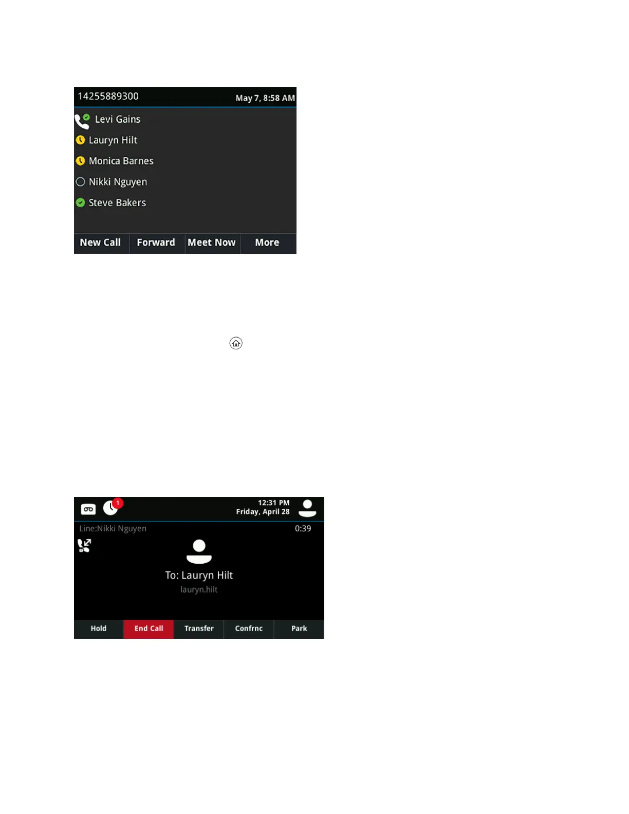 Active Call screen on VVX 500 series phones