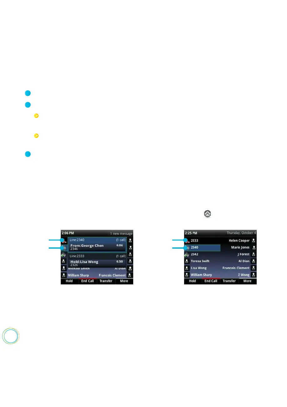 line display under the associated phone line. Scroll up or down to see all your lines and