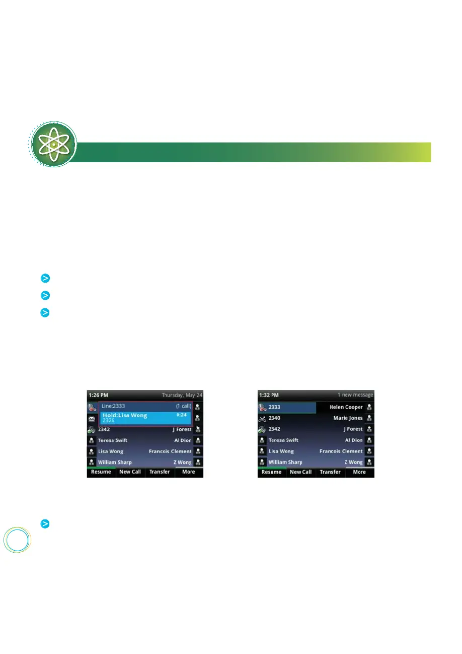 You can place any active call on hold. A held call displays in Calls and Lines view as follows :