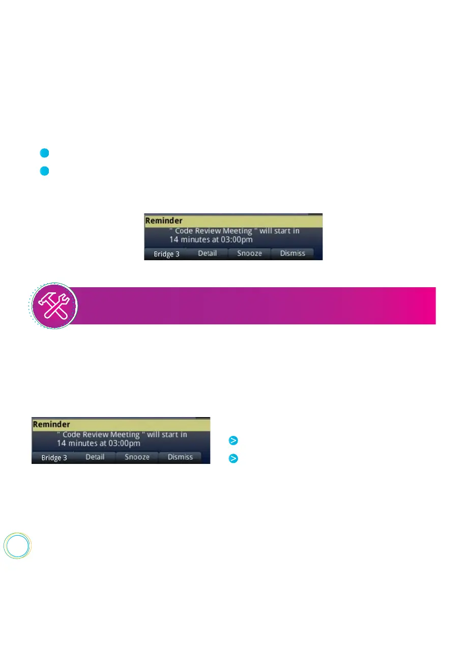 all meetings. When disabled, the phone won’t display reminders for any meeting.