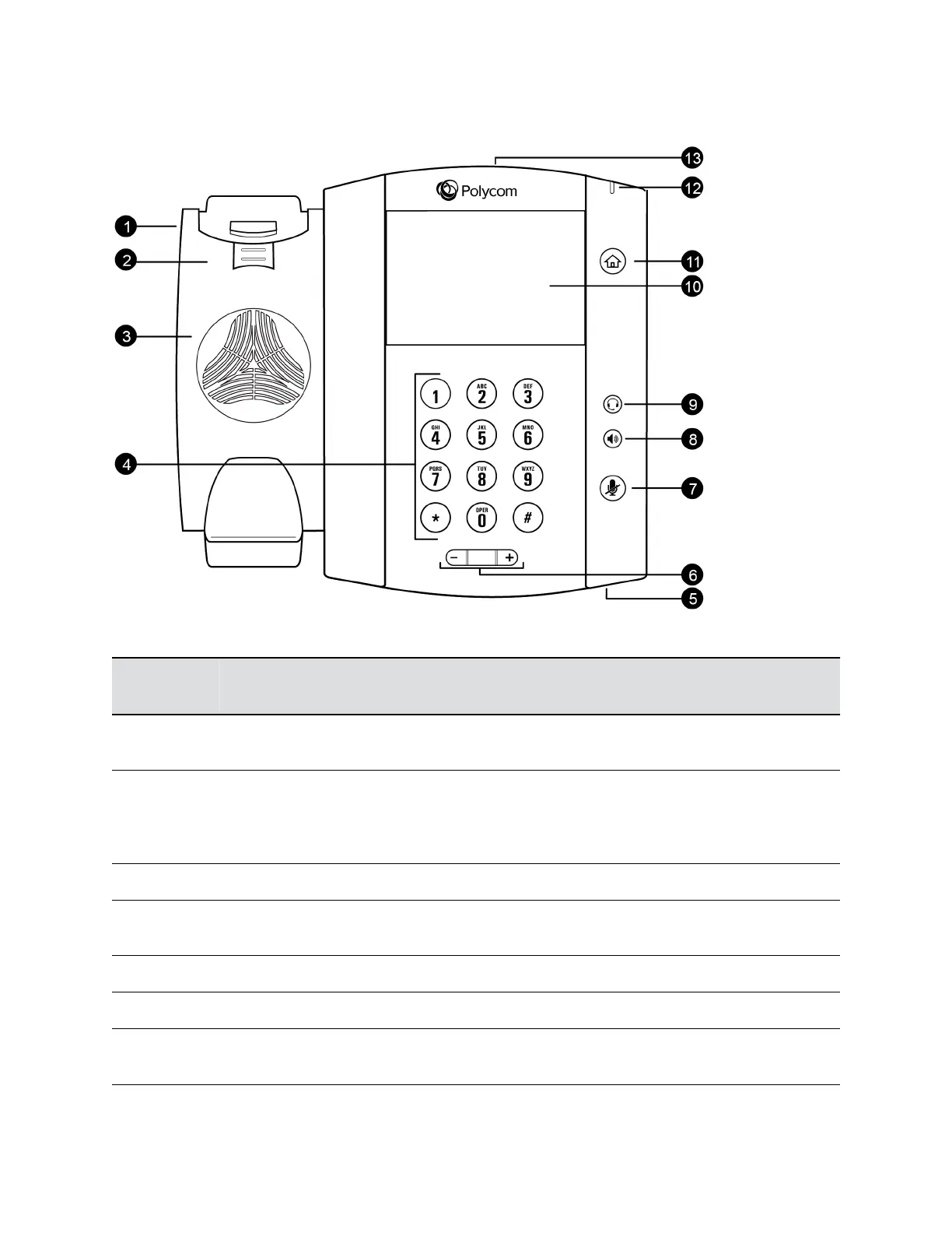 6 Volume keys Adjust the volume of the handset, headset, speaker, and ringer.