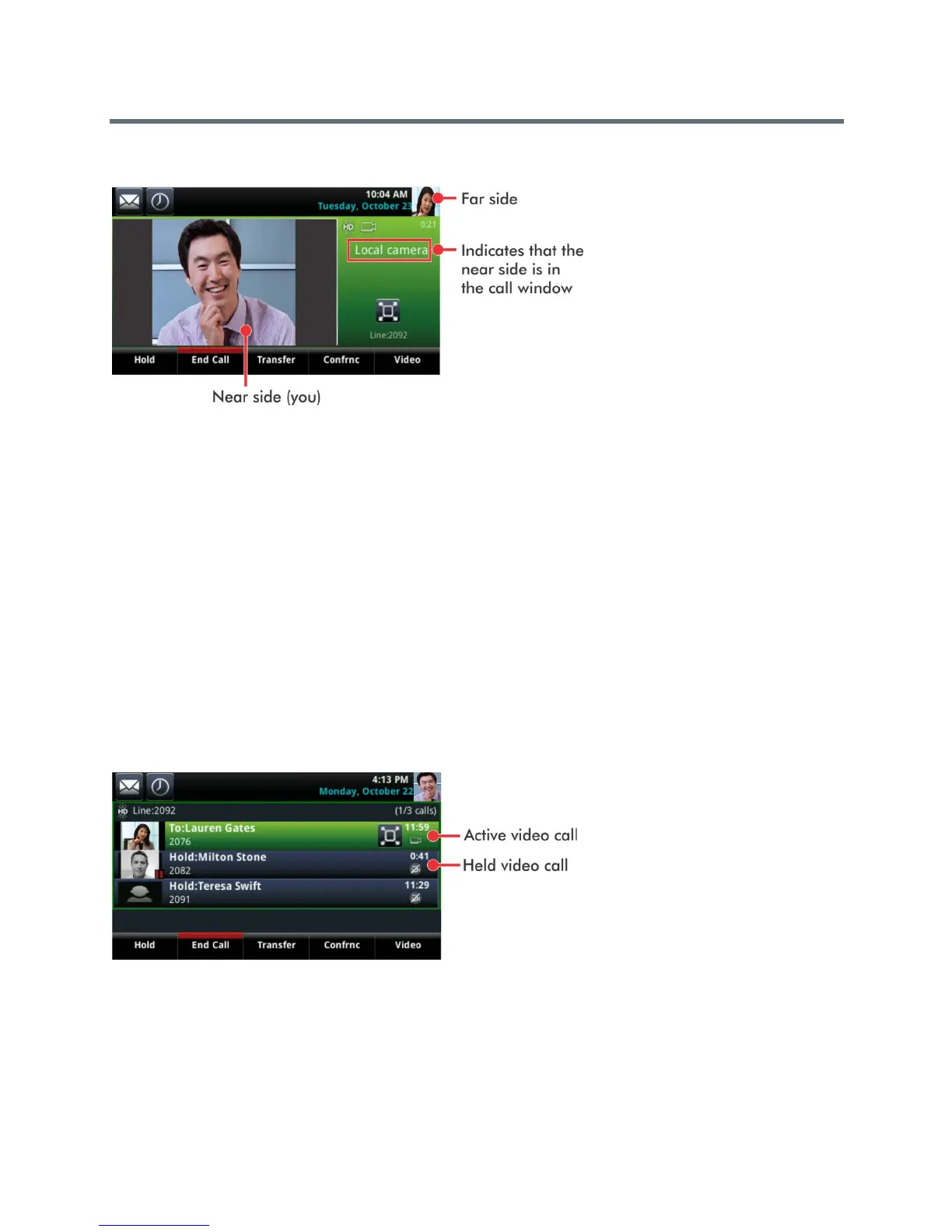 When two or more calls are video calls, only the active call displays video. On VVX 500 and 600 phones,